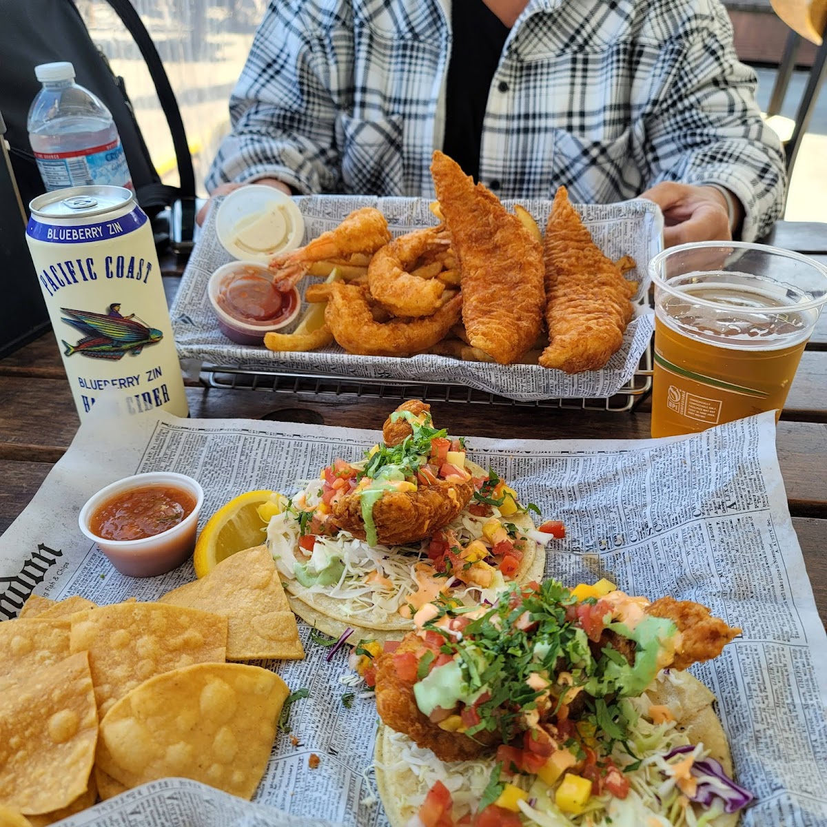 The menu centers on straightforward, hearty seafood dishes with a West Coast tilt. Baja fish tacos, clam chowder served in a sourdough bread bowl, and a variety of fried and grilled fish and shrimp options capture the essence of coastal comfort food here. Portions are generous and fill the plate with familiar flavors rather than fancy or experimental preparations. Alongside the food, pints and pitchers of local draft beer or a crisp hard cider complement the meal well for those looking to linger, soak in the harbor views, and unwind.